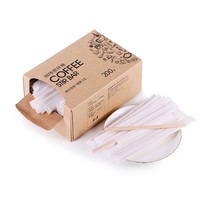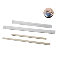 عصي تحريك القهوة الخشبية الطبيعية القابلة للاستعمال مرة واحدة ، معبأة بغلاف ورقي أبيض عادي